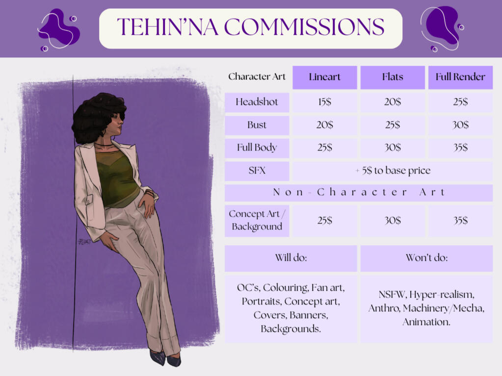 I'm Tehin'na, a freelance digital artist looking to earn money doing what they love.